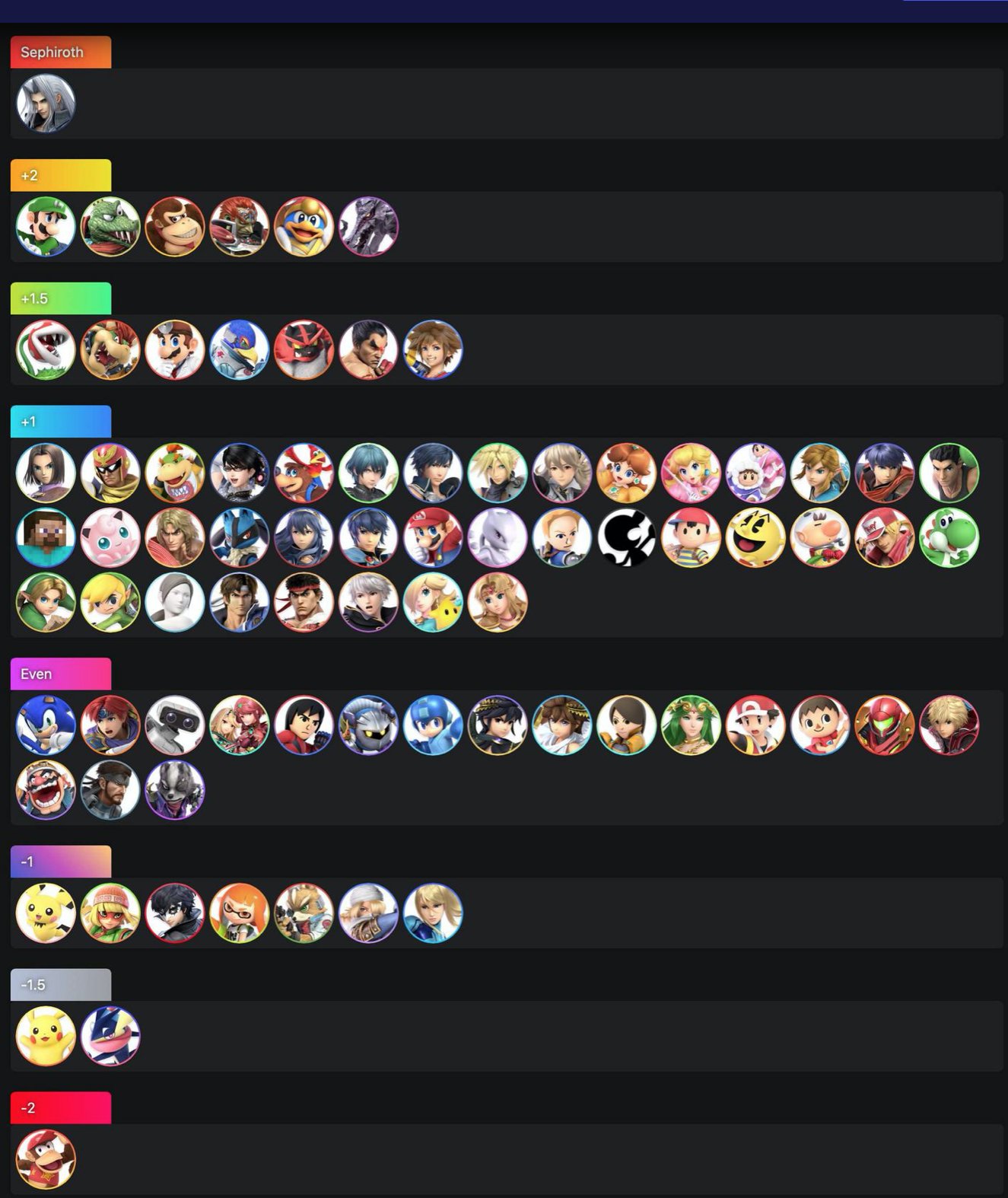 Sephiroth Mu Chart - Web in a sense, the matchup is all about if sora can manage to approach sephiroth, or force sephiroth to come to sora. This is a guide to using sora in super smash bros. Web nairo finds out where light put sephiroth on his fox mu chart. He plays nairo a lot. Web iβd say aegis, fox and zss are losing match ups. The final fantasy antagonist arrives as dlc fighter #8 and comes with a unique moveset to boot. Perfect your gameplan with stage bans/picks, tips, and more! Search for a matchup to get stage rankings for. Also nakat believes sora loses, and he's the sora with the most experience in the sephiroth matchup. This is just one example of the many dynamics within the. Web nairo finds out where light put sephiroth on his fox mu chart. Web this chart takes from personal experience both online and offline, watching other sephiroth players, searching for common consensus online, and even a poll from this subreddit. Web iβd say aegis, fox and zss are losing match ups. Also nakat believes sora loses, and he's the sora with the most experience in the sephiroth matchup. Web ned sephiroth matchup chart | jul '23. Web my mu chart for online smash bros sephiroth. Web sephiroth is available in smash ultimate with the v10.0.0 update! He plays nairo a lot. Web 52 rows sephiroth's super smash bros. This is a guide to using sora in super smash bros. Web my mu chart for online smash bros sephiroth. 90k views 2 years ago #smashbros #smashbrosultimate #nairo. Web this chart takes from personal experience both online and offline, watching other sephiroth players, searching for common consensus online, and even a poll from this subreddit. Web this is the mu chart he would've had if they made sephiroth as strong as. 21k views 10 months ago #sephiroth #tweek #smashbros. Web in a sense, the matchup is all about if sora can manage to approach sephiroth, or force sephiroth to come to sora. Web master the most important combos of sephiroth from super smash bros. Web sephiroth is available in smash ultimate with the v10.0.0 update! Web i swear this is the. This is a guide to using marth in super smash bros. 3.5k views 11 months ago. Sora bread and butter combos, how to unlock, frame data. Most people seem like they call him a top tier but have him losing every matchup against. Sephiroth sturggles with characters who have good frame data and can get up close. Web 52 rows sephiroth's super smash bros. Marth's bread and butter combos, how to unlock, frame. 3.5k views 11 months ago. Most people seem like they call him a top tier but have him losing every matchup against. Web sephiroth matchup chart 2023. Also nakat believes sora loses, and he's the sora with the most experience in the sephiroth matchup. Web nairo finds out where light put sephiroth on his fox mu chart. Web sephiroth is available in smash ultimate with the v10.0.0 update! This is a guide to using sora in super smash bros. Web 52 rows sephiroth's super smash bros. Web this mu chart makes sephiroth look decent at best. This is a guide to using marth in super smash bros. Web the final sephiroth matchup chart. The final fantasy antagonist arrives as dlc fighter #8 and comes with a unique moveset to boot. 90k views 2 years ago #smashbros #smashbrosultimate #nairo. He plays nairo a lot. Web iβd say aegis, fox and zss are losing match ups. This is a guide to using sora in super smash bros. Web this mu chart makes sephiroth look decent at best. Marth's bread and butter combos, how to unlock, frame. Web sephiroth is available in smash ultimate with the v10.0.0 update! Web i swear this is the first sephi matchup chart that makes him look like a borderline top tier. 90k views 2 years ago #smashbros #smashbrosultimate #nairo. Web iβd say aegis, fox and zss are losing match ups. Web nairo finds out where light put sephiroth on his fox. Sephiroth sturggles with characters who have good frame data and can get up close. This is a guide to using sora in super smash bros. Web learn all about sephiroth from super smash bros. Lmk if you would like a offline edition.background music is jenova phase 3 from ffvii remakedon't take. Web after going on his competitive hot streak these. Web sephiroth is available in smash ultimate with the v10.0.0 update! Web i swear this is the first sephi matchup chart that makes him look like a borderline top tier. Web in a sense, the matchup is all about if sora can manage to approach sephiroth, or force sephiroth to come to sora. Also nakat believes sora loses, and he's. Web nairo finds out where light put sephiroth on his fox mu chart. 3.5k views 11 months ago. Web sephiroth is available in smash ultimate with the v10.0.0 update! Sephiroth sturggles with characters who have good frame data and can get up close. Web learn all about sephiroth from super smash bros. Web after going on his competitive hot streak these past few months, tweek has put together match up charts for his 2 main loves in smash ultimate, the classic diddy. The final fantasy antagonist arrives as dlc fighter #8 and comes with a unique moveset to boot. Web this is the mu chart he would've had if they made sephiroth as strong as the rest of fp2 lmao. Web ned sephiroth matchup chart | jul '23. Most people seem like they call him a top tier but have him losing every matchup against. They can also kill before or soon after he. Their stories, goals, utility, and star players right here on dashfight! Marth's bread and butter combos, how to unlock, frame. Web iβd say aegis, fox and zss are losing match ups. He plays nairo a lot. Lmk if you would like a offline edition.background music is jenova phase 3 from ffvii remakedon't take.Sephiroth mu chart